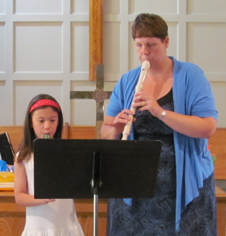 Kathleen, a long time student, entertained some JK and Grade 1 students at a local public school. She performed duets with Lisa, on the Recorder, Piano and Guitar.